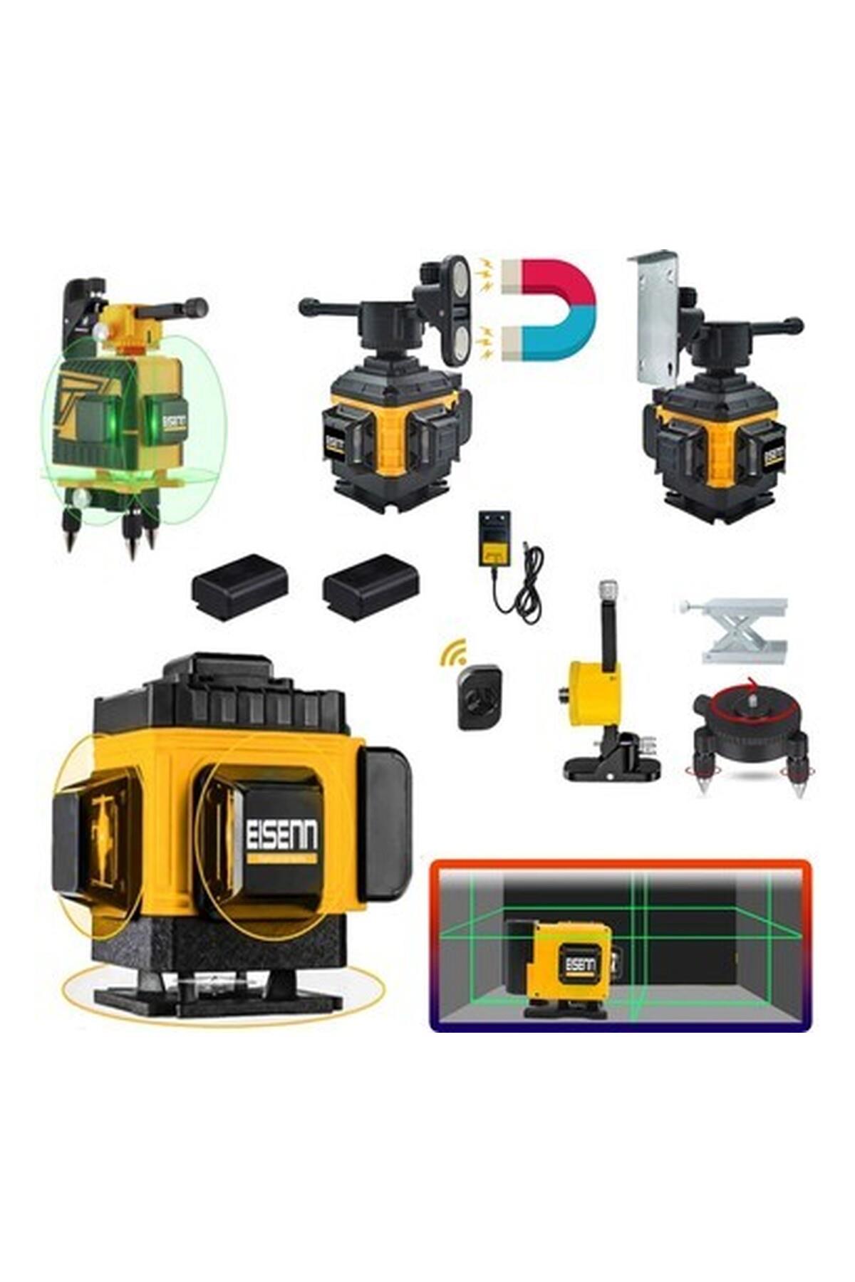 Eisenn 16 Köşe Artı Lazer Terazi Distomat 360 Derece 2 Akülü Kumandalı Mıknatıslı 45 mt Menzil Yeşil Çizgi